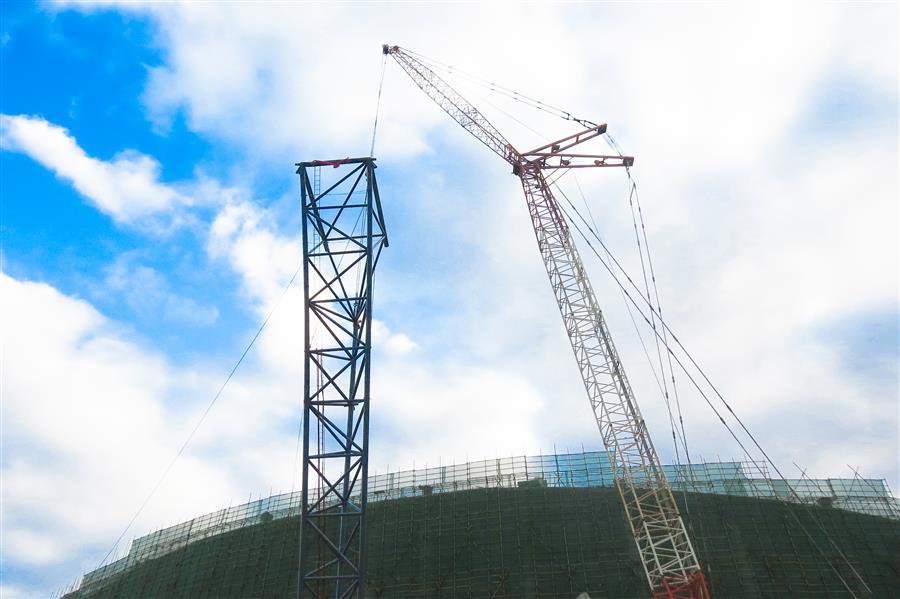 靖西市乒乓主題體育公園鋼結(jié)構(gòu)罩棚空間桁架采用三角桁架形式,桁架柱向外傾斜,與地面夾角呈65°,重量達(dá)25噸,桁架柱即徑向桁架為三角管桁架,整體結(jié)構(gòu)呈倒L形,根據(jù)其受力特點(diǎn)可分為懸挑式和前端支承式,懸挑式根部設(shè)置撐桿,撐桿連接在看臺勁性柱上。此次桁架吊裝難度大、技術(shù)要求高,項(xiàng)目部從構(gòu)件進(jìn)場、精準(zhǔn)定位、吊裝,每一道工序、每一個環(huán)節(jié)都實(shí)行全過程無縫隙標(biāo)準(zhǔn)化管理,全力確保安裝和細(xì)節(jié)符合技術(shù)要求。