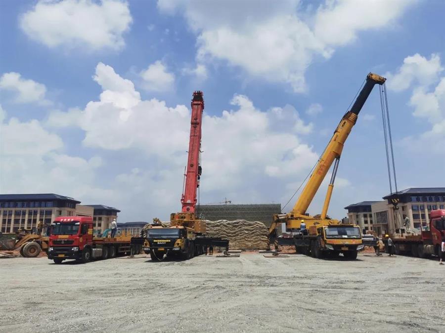 目前,項目現(xiàn)場的市政道路和給排水、強弱電、圍墻、園林景觀、綠化、亮化等分部分項工程全面鋪開,46名管理人員分工盯守各個工作面,日均投入各類工種的作業(yè)人員600余人,挖土機32臺、鏟車7臺、釵車2臺、各式壓路機6臺、灑水車6臺、環(huán)保工程車39臺,人員、機械根據(jù)每日任務(wù)清單晝夜連軸轉(zhuǎn),建設(shè)場面如火如荼,搶工成效顯著。
