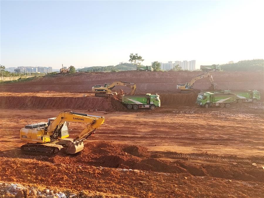 在第七分公司承建的柳江區(qū)新興工業(yè)園柳石路東片區(qū)基礎(chǔ)設(shè)施建設(shè)項目-土方平整工程(三期)施工現(xiàn)場,項目管理人員和工人用辛勤的汗水為城市建設(shè)默默奉獻(xiàn)。