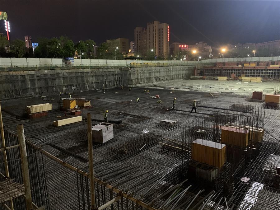 時(shí)至深夜,贛州市人民醫(yī)院新院職工交流房項(xiàng)目工作人員依舊奮戰(zhàn)在施工現(xiàn)場(chǎng),現(xiàn)場(chǎng)機(jī)械轟鳴聲、焊接切割聲交織在一起,一片熱火朝天的大干景象。目前,130余名施工作業(yè)人員全面鋪開(kāi)各個(gè)工作面,底板防水施工、承臺(tái)鋼筋綁扎、磚胎膜砌筑、樁頭破除、地下室頂板架子搭設(shè)和模板安裝等工作都在有序推進(jìn),各班組都在按照計(jì)劃加班加點(diǎn)推進(jìn)項(xiàng)目建設(shè)進(jìn)度。