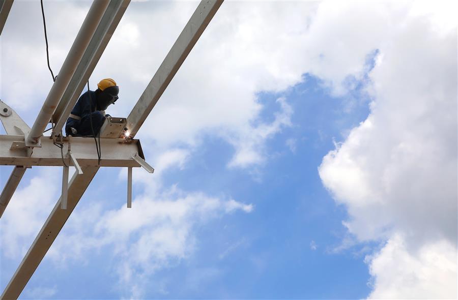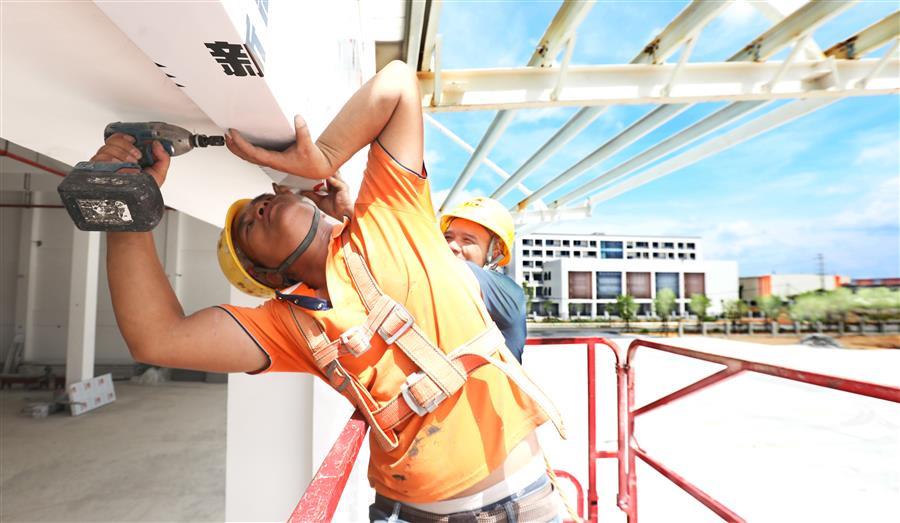 炎炎夏日,擋不住項目推進(jìn)的步伐。7月20日,由冶建公司承建的柳州鐵路港核心區(qū)(西鵝鐵路物流中心)倉儲配一體庫項目施工現(xiàn)場,皮膚黝黑的覃五偉在工友的配合下,迅速而準(zhǔn)確地把一塊塊外立面板材安裝到位,與此同時在該項目現(xiàn)場、不同作業(yè)崗位上的,還有幾十名工人,正在揮汗如雨地工作,大家克服困難、齊心協(xié)力施工,就是為了盡快完成項目的收尾工作,早日交付。