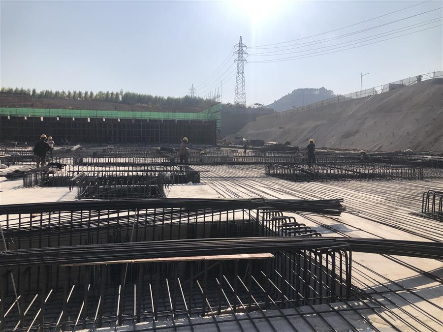 該項目是柳州市重點項目,總建筑面積為8.7萬平方米。目前靜壓樁施工已全部完成;1號樓E區(qū)頂板完成;H區(qū)底板完成;F區(qū)與G區(qū)底板防水保護層完成;2號樓A區(qū)二層模板安裝完成,D區(qū)負(fù)一層滿堂架搭設(shè)完成。