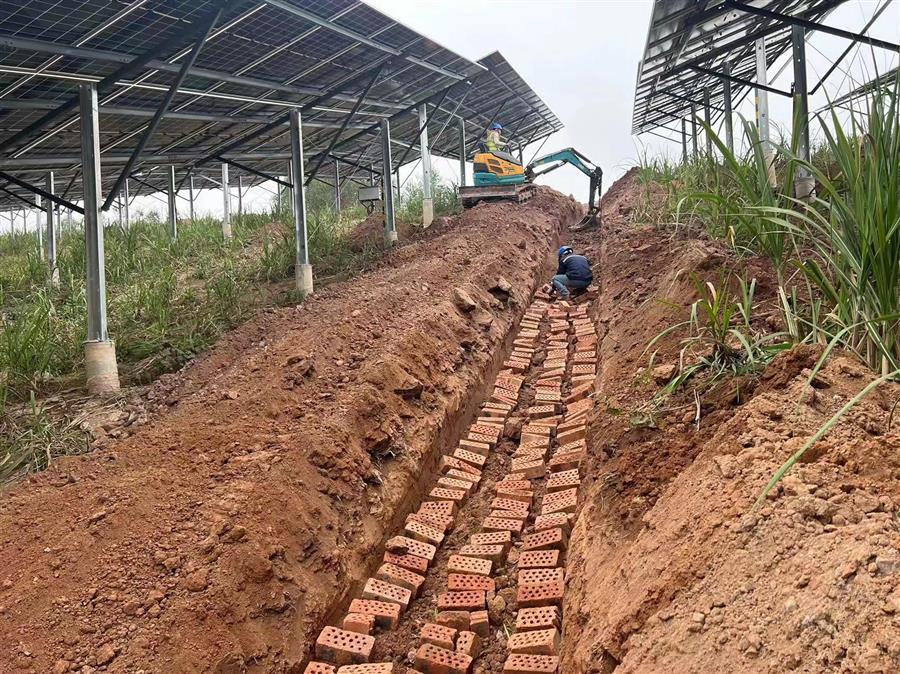 節(jié)后復工復產以來,項目接地網開挖敷設完成1235米,低壓電纜敷設完成1285米,光伏專用電纜敷設完成14760米,圍欄安裝1030米。