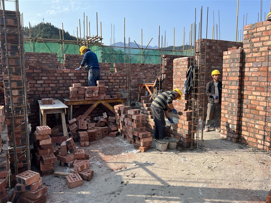 融水苗族自治縣安陲鄉(xiāng)江門村鄉(xiāng)村振興產(chǎn)業(yè)園項目總建筑面積約8420平方米。項目建設(shè)內(nèi)容包括:園區(qū)標準廠房建設(shè)及道路工程、場地平整、雨水、污水、給水、室外電氣及室外綠化工程;廠房結(jié)構(gòu)形式為框架結(jié)構(gòu)。目前,項目1#廠房二層磚墻砌磚40%;4#、5#廠房外墻磚砌筑90%;7#廠房主體結(jié)構(gòu)屋面鋼筋綁扎完成。
