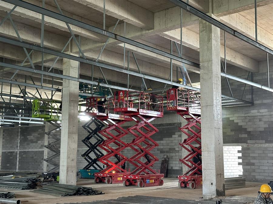 融水縣和睦產(chǎn)業(yè)園項目加班進(jìn)行安裝屋面鋼絲、涂刷防火材料及場地平整。