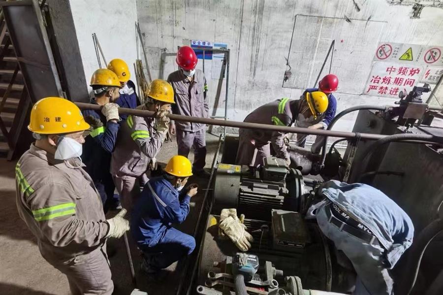 廣西北海市鐵山港區(qū)二煉鋼輔助設(shè)備維保年度承包項目,十余名工人在二煉鋼中頻爐液壓站進(jìn)行電機搶修,加班完成拆除更換任務(wù)。