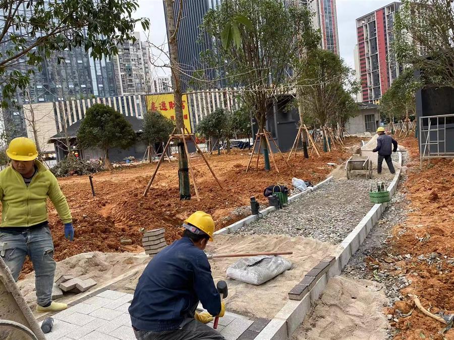 為如期實(shí)現(xiàn)建成目標(biāo),項(xiàng)目部積極協(xié)調(diào)各方力量,科學(xué)合理安排工序,在保證安全生產(chǎn)和施工質(zhì)量的前提下,全力加快推進(jìn)項(xiàng)目建設(shè),爭取早日完成地面部分工程,達(dá)到開放條件。截至目前地下室框架已完成,室外給排水管道完成95%,路面路基整形完成100%,園林綠化完成80%,出入口裝飾裝修完成80%,地面鋪裝完成80%。