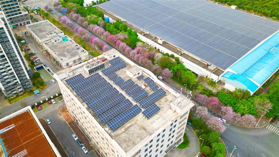 該項目施工內(nèi)容包含光伏基礎(chǔ)施工、支架系統(tǒng)安裝、光伏組件鋪設(shè)、逆變器及并網(wǎng)計量柜等配套電氣設(shè)備安裝、接地防雷系統(tǒng)施工、電纜敷設(shè)與橋架安裝等全部工程。項目總裝機容量2792.79kWp,采用4774片585Wp單晶硅光伏組件,配置110kW逆變器16臺、50kW逆變器1臺、100kW逆變器8臺,共設(shè)7個并網(wǎng)點,采用“自發(fā)自用、余電上網(wǎng)”模式,年發(fā)電量約267.27萬kWh。