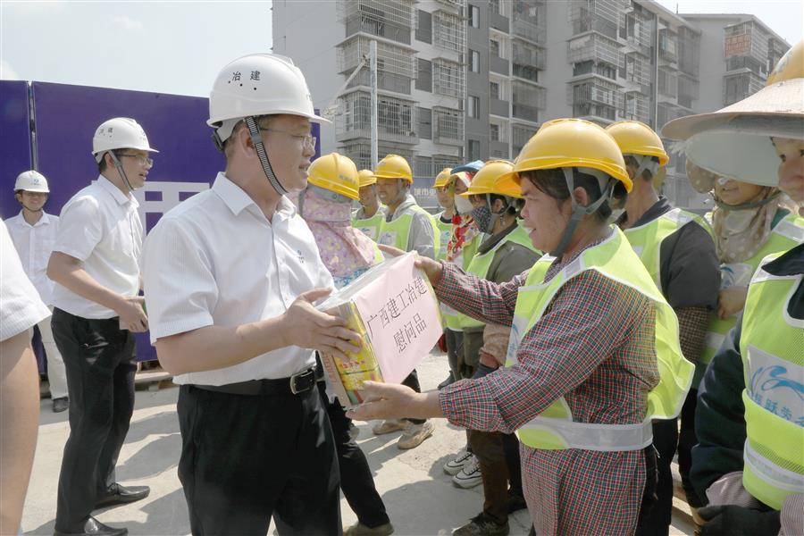 夏日炎炎,高溫不斷,工作不停,節(jié)奏不減。隨著高溫天氣的到來,冶建公司2023年“送清涼”慰問活動正式開啟。7月27日,冶建公司董事長、黨委書記覃振華,帶著清涼慰問品,到第七分公司承建的原柳州市第三棉紡織廠集資建房項目施工現(xiàn)場,慰問持續(xù)戰(zhàn)斗在一線的勞務(wù)工人和項目管理人員。