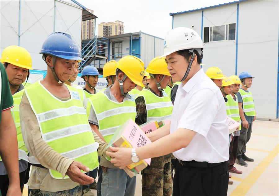 慰問中,蒙勝益向高溫中堅(jiān)守在項(xiàng)目一線的建設(shè)者們表示感謝,并詳細(xì)了解了分公司、項(xiàng)目部防暑降溫措施落實(shí)情況。他表示,當(dāng)前天氣酷熱難耐,在施工過程中要做好防暑降溫,身體感到不適應(yīng)時(shí)要及時(shí)休息。分公司、項(xiàng)目部要認(rèn)真做好高溫天氣施工方案,根據(jù)天氣情況制定施工計(jì)劃,避開高溫時(shí)段作業(yè),同時(shí)要抓好工人的安全教育工作,備足防暑降溫物資,做好安全管理和后勤保障工作,保障工人身體健康,確保項(xiàng)目安全有序推進(jìn)。