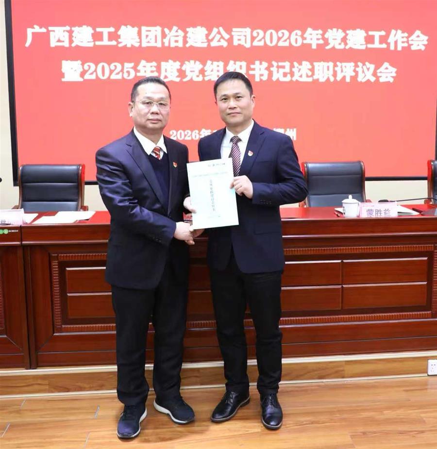 1月23日,冶建公司2026年黨建工作會(huì)暨2025年度黨組織書記述職評(píng)議會(huì)在第二會(huì)議室召開。公司黨委書記、董事長(zhǎng)覃振華參加并講話,黨委副書記、總經(jīng)理蒙勝益?zhèn)鬟_(dá)集團(tuán)公司2026年黨建工作會(huì)暨2025年度黨組織書記述職評(píng)議會(huì)精神,黨委副書記、紀(jì)委書記、工會(huì)主席賴海標(biāo)主持,領(lǐng)導(dǎo)班子成員廖立波、阮仁勝、韋克雪、葉益華參加。