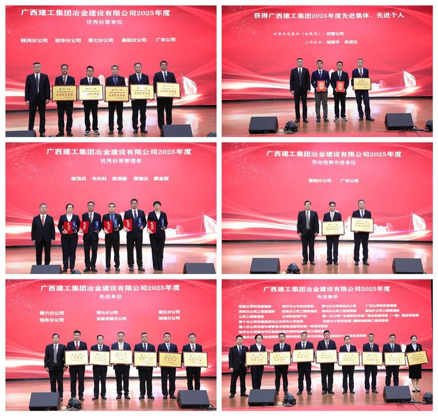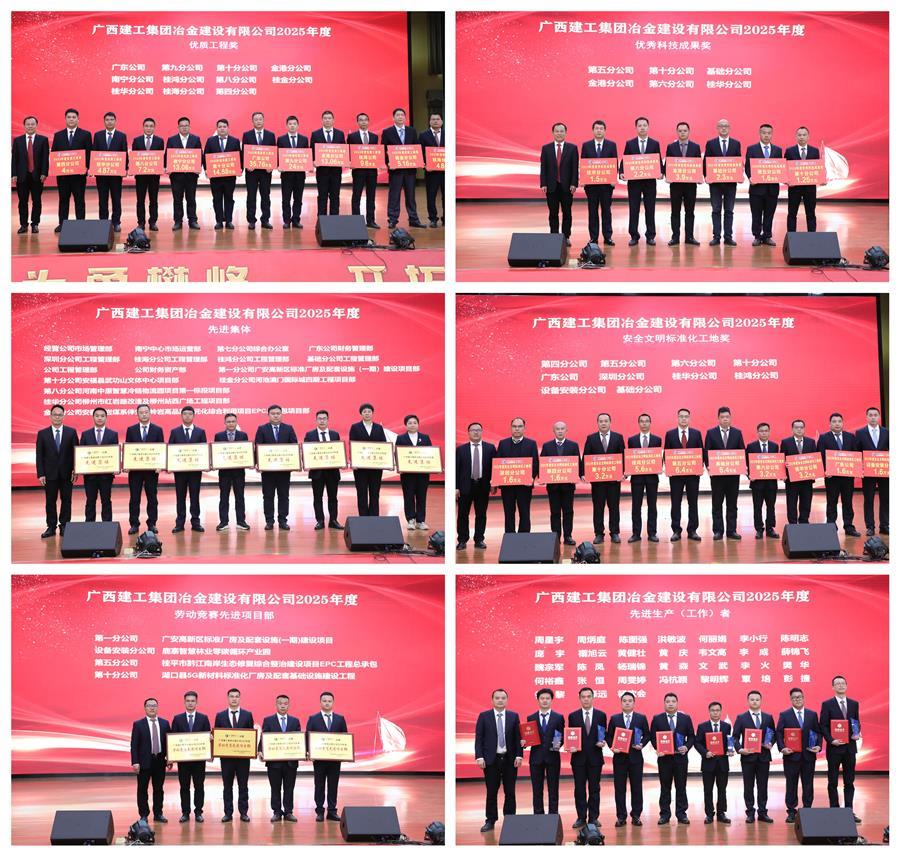 會上表彰了公司2025年度先進單位、集體及個人,勞動競賽先進單位、項目部及個人,優(yōu)質工程、優(yōu)秀科技成果、安全文明標準化工地等。桂鴻分公司、桂華分公司、第七分公司、第一分公司等5家單位作經(jīng)驗交流發(fā)言。