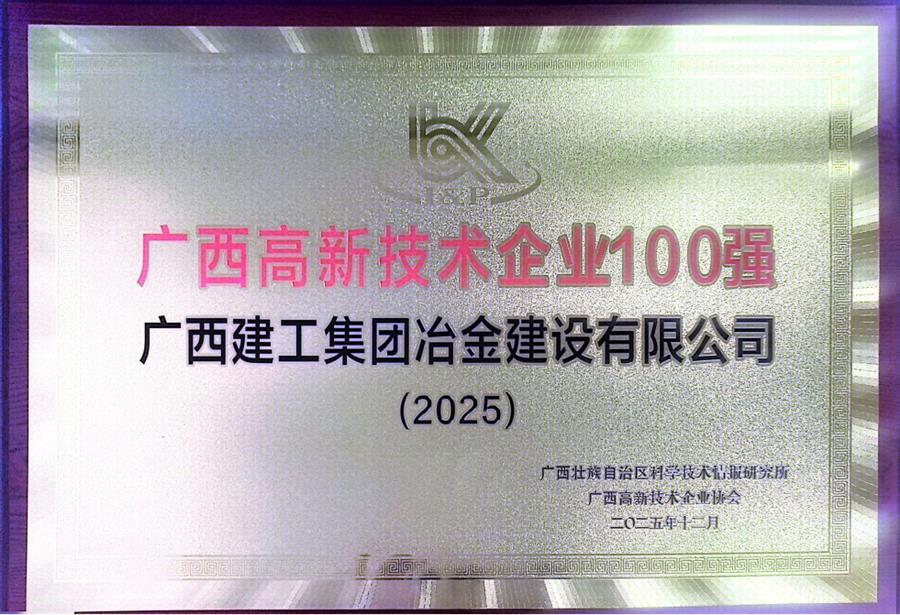 近日,廣西科技情報(bào)研究所聯(lián)合廣西高新技術(shù)企業(yè)協(xié)會正式發(fā)布2025年度廣西高新技術(shù)企業(yè)百強(qiáng)系列榜單。冶建公司憑借突出的創(chuàng)新實(shí)力、穩(wěn)健的發(fā)展質(zhì)效成功躋身榜單,充分彰顯了公司技術(shù)創(chuàng)新能力、核心競爭力與行業(yè)影響力。