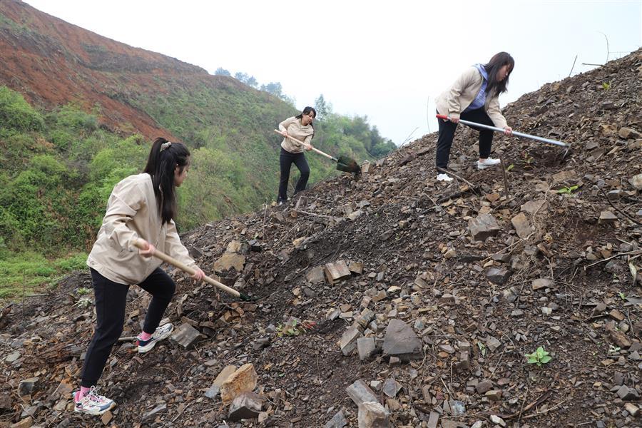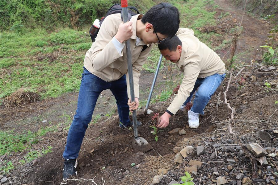 活動現(xiàn)場,青年志愿者分組分片區(qū)開展植樹活動。各小組團員青年分工協(xié)作、默契配合,鏟土挖坑、立苗填土,個個熱情高漲、干勁十足,活動現(xiàn)場氣氛熱烈。經(jīng)過大家熱火朝天的忙碌,一排排新種樹苗有序“落根”,山坡上煥發(fā)出盎然生機。