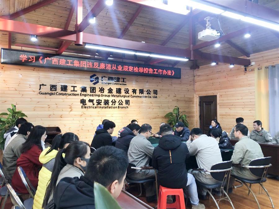 11月27日下午,萬興分公司黨支部組織開展主題黨日活動(dòng),深入學(xué)習(xí)綠地大基建集團(tuán)執(zhí)行總裁、集團(tuán)公司董事長、黨委書記金寧運(yùn)在集團(tuán)公司廉潔從業(yè)工作會(huì)上的講話精神和《廣西建工集團(tuán)違反廉潔從業(yè)規(guī)定檢舉控告工作辦法》。
