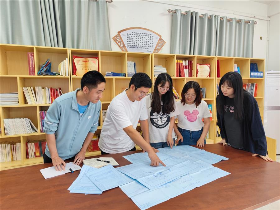 李年歡帶領(lǐng)團隊研究圖紙